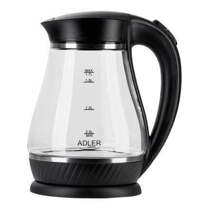 Jarro elétrico de vidro para água ad 1274, 2200 w; capacidade: máxima 1,7 l, mínima 0,5 l, elemento de aquecimento de inox, proteção contra ebulição sem água, retro iluminação led azul durante a cozedura, luz indicadora, indicador de nível de água com escala, desliga automático; base giratória 360°, carcaça fabricada em polipropileno, compartimento para armazenamento do cabo de alimentação, o cabo mede 69 cm; potência nominal 1850 w, máxima 2200 w; 220-240 v~50-60 hz; 24 x 21 x 16 cm