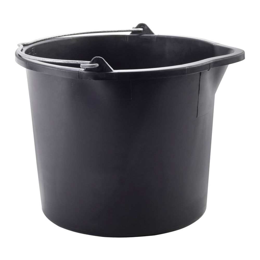 Balde construção 5l. com bico 6595 dimensões: ø23,5×18,3cm (diametro/altura) cor: preto. material: polietileno. medidor interno em litros.