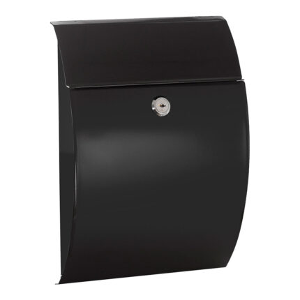 Caixa de correio individual para exterior tamanho s (a5), fabricada em aço galvanizado lacado preto; pode ser usada como recolhedor de cartas graças à sua abertura posterior; abertura de porta vertical; inclui suporte para cartões, duas chaves e parafusos; resistente aos raios uv; medidas: boca 18,2 x 3 cm, recolhedor de cartas 19,7 x 2 cm, exterior 22 x 8 x 32 cm
