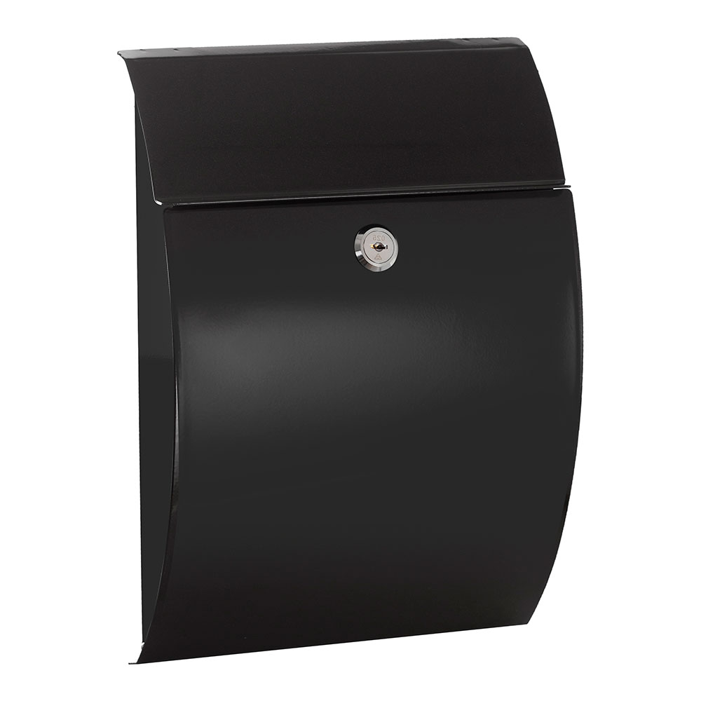 Caixa de correio individual para exterior tamanho s (a5), fabricada em aço galvanizado lacado em preto, linhas curvas e abertura de porta vertical; inclui suporte para cartões, duas chaves e parafusos; resistente aos raios uv; medidas: boca 17,5 x 3 cm, exterior 21 x 7,5 x 29 cm