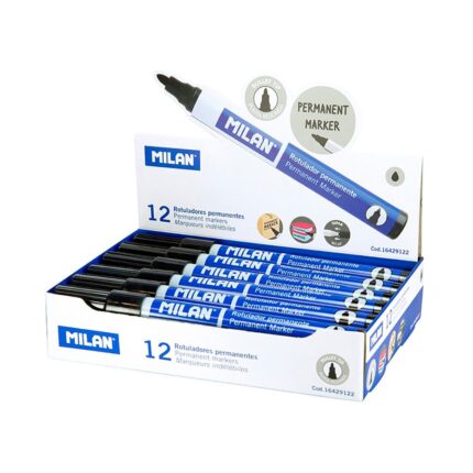 Pack com 12 marcadores permanentes pretos. ponta redonda milan