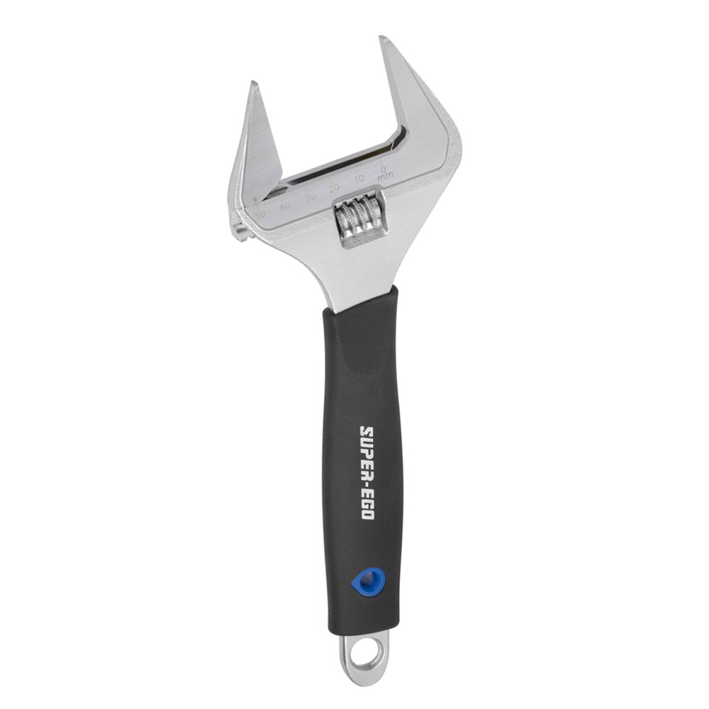 Chave ajustável abertura grande 10″ seh019200 super ego. forjada em aço especial cromado. escala ennm e polegadas. duração e resistência garantidas. cabo de tato suave para uma agarre seguro. comprimento 250mm, 10″ – 250mm