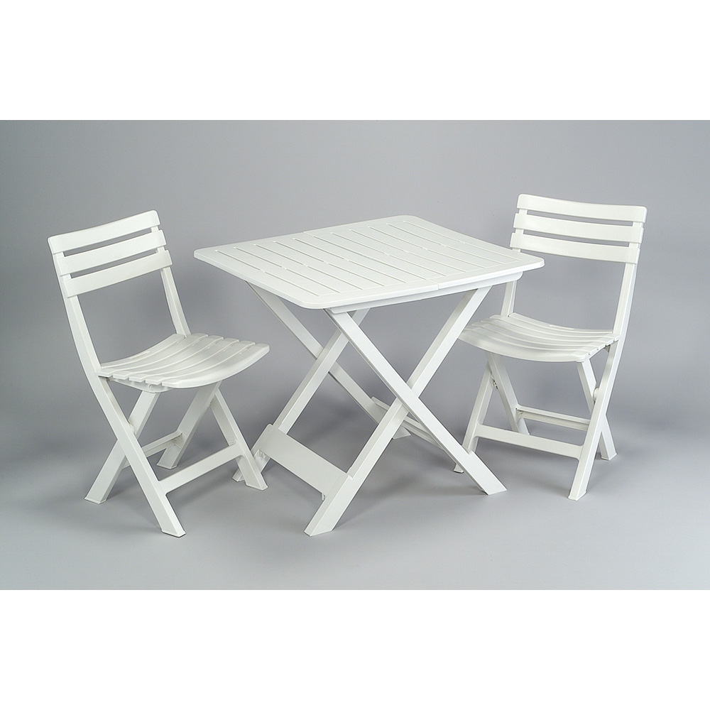 Conjunto de campismo cor: branco composto por 2 cadeiras dobráveis 44x41x75cm e 1 mesa dobrável 80x72x70cm (largura/profundidade/altura) peso: 12,86kg modelo: conjunto de camping. feito com polipropileno. progarden. atenção: só para uso doméstico