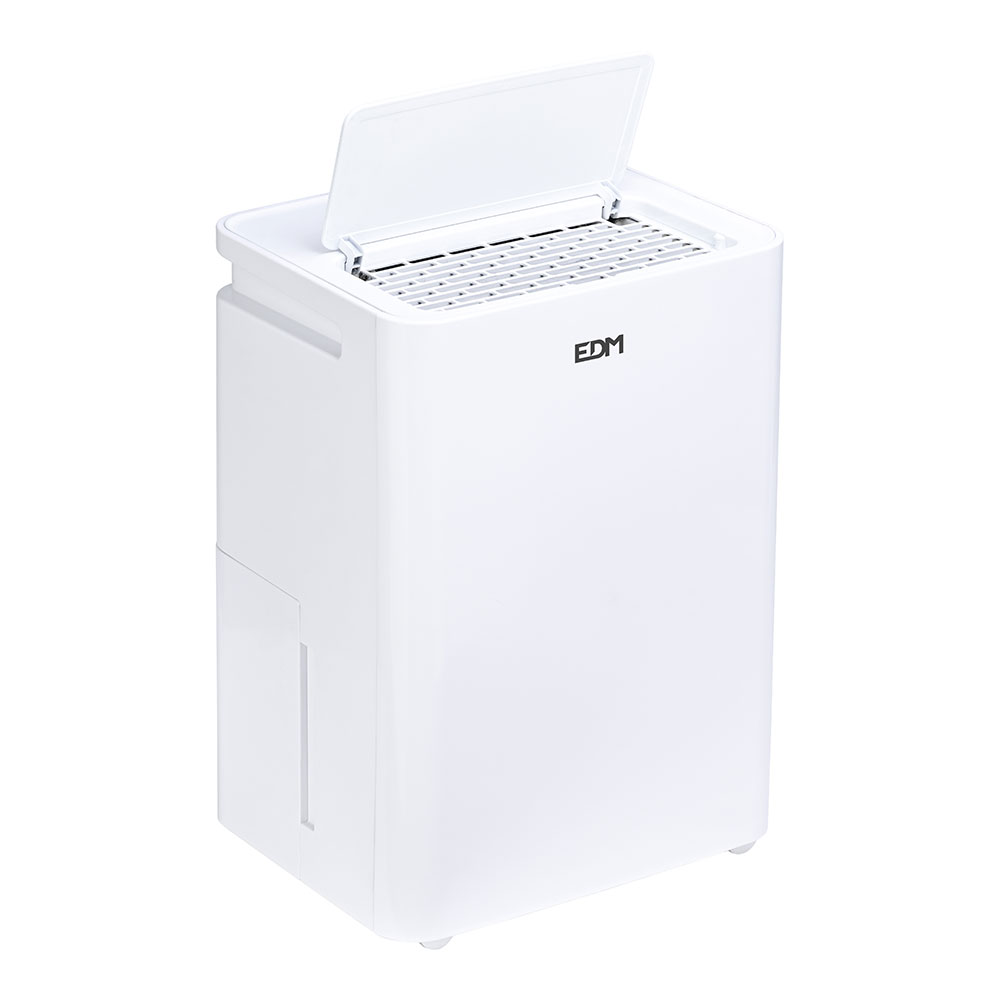 Desumidificador portátil, potência 260 w, depósito 3,2 l. ventilador de 2 velocidades. temporizador, controlo de humidade ajustável, modo confort, indicador de depósito cheio, indicador de descongelação, possibilidade de drenagem contínua (tubo não incluído), painel de controle tátil com ecrã digital, filtros laváveis, rodas incorporadas e pegas laterais, desumidificação 30°c rh80%, gás refrigerante r290, 0,038 kg, pressão máxima admissível 4,0 pa, temperatura de trabalho 5 °c – 32°c, voltagem 220- 240 v / 50/60 hz medidas: 29 x 23 x 41,4 cm
