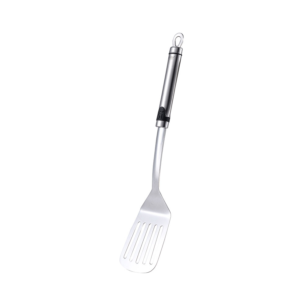 Espátula 35×7,8cm inox expert sg7335 san ignacio. este é um utensílio que não pode falta em nenhuma cozinha, já que, facilita a preparação de diferentes receitas de modo prático e simples. espátula de inox cuja composição é apta para desfrutar do seu uso durante longos períodos de tempo, mantendo a sua estética e uso. esta peça conta com a qualidade dos utensílios de cozinha de silicone e inox característicos desta linha de produtos. fácil de lavar. cozinha em segurança. esta espátula não risca, nem deixa marcas nem nenhum tipo de danos sobre a superfície de outros utensílios de cozinha como, por exemplo, panelas ou frigideira. peça com revestimento anti-aderente. fácil de armazenar. cabo perfurado na ponta para poder pendurar este utensílio, guardando-o de forma prática e fácil