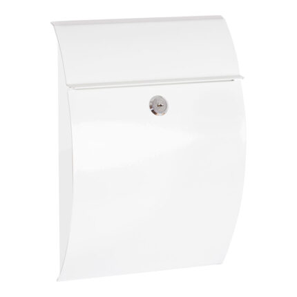 Caixa de correio individual para exterior tamanho s (a5), aço galvanizado lacado branco. tampa superior em forma de telhado que oculta a boca e a protege da água da chuva; abertura de porta lateral; inclui suporte para cartões, duas chaves e parafusos; resistente aos raios uv; medidas: boca 17,5 x 2 cm, exterior 21,6 x 8 x 30 cm