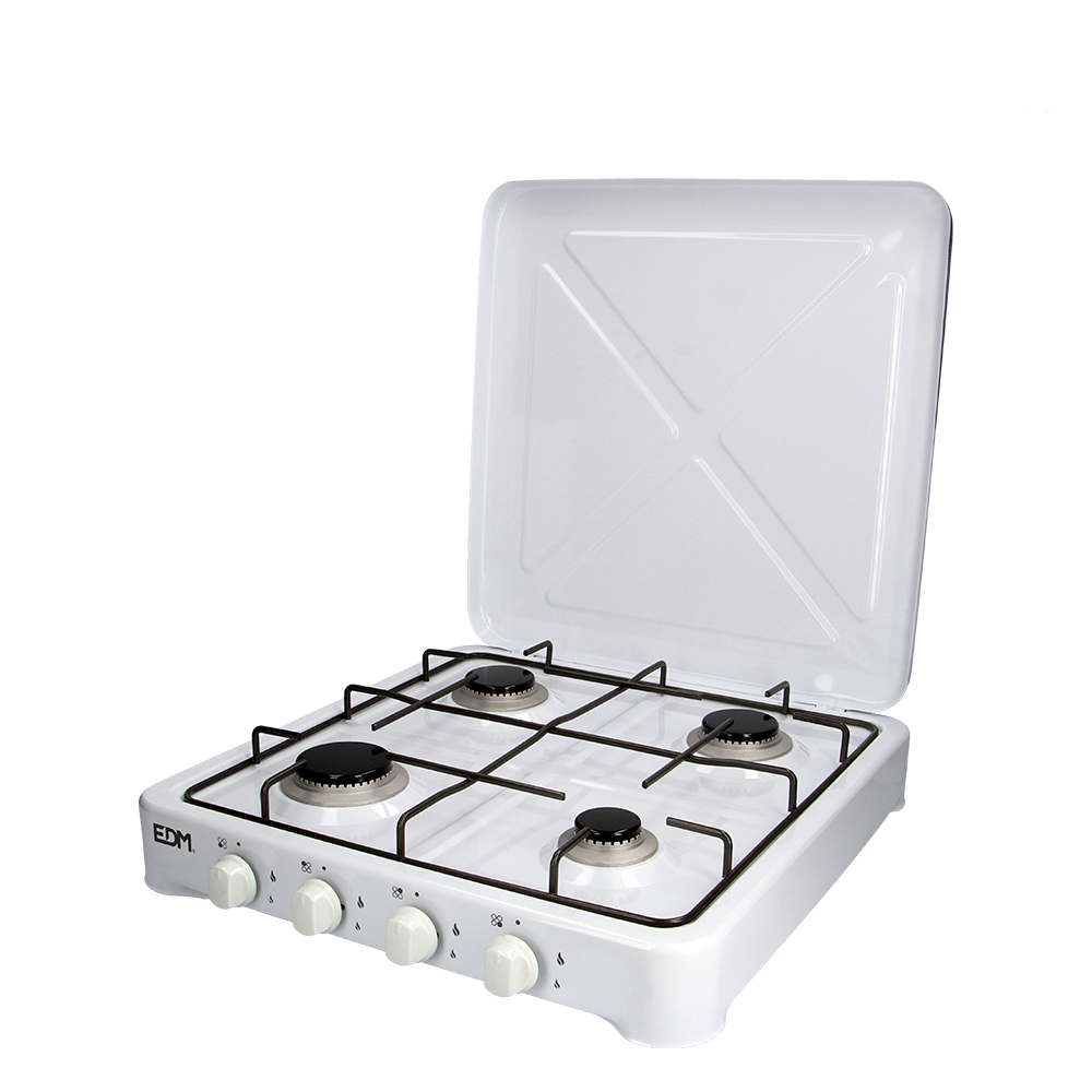 Fogão de gás esmaltado 4 queimadores. 2 queimadores ø65mm + 1 queimador ø75mm + 1 queimador ø50mm. cor branco. para ser usado com gás butano e somente em exteriores. medidas: 57 x 52 x 7,5 cm