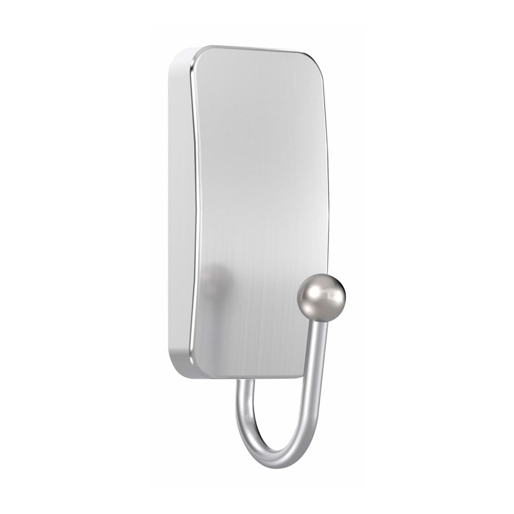 Gancho em metal com reflexos modernos, médio, níquel acetinado, 1 unidade + 2 tiras, carga máx. 1,3 kg