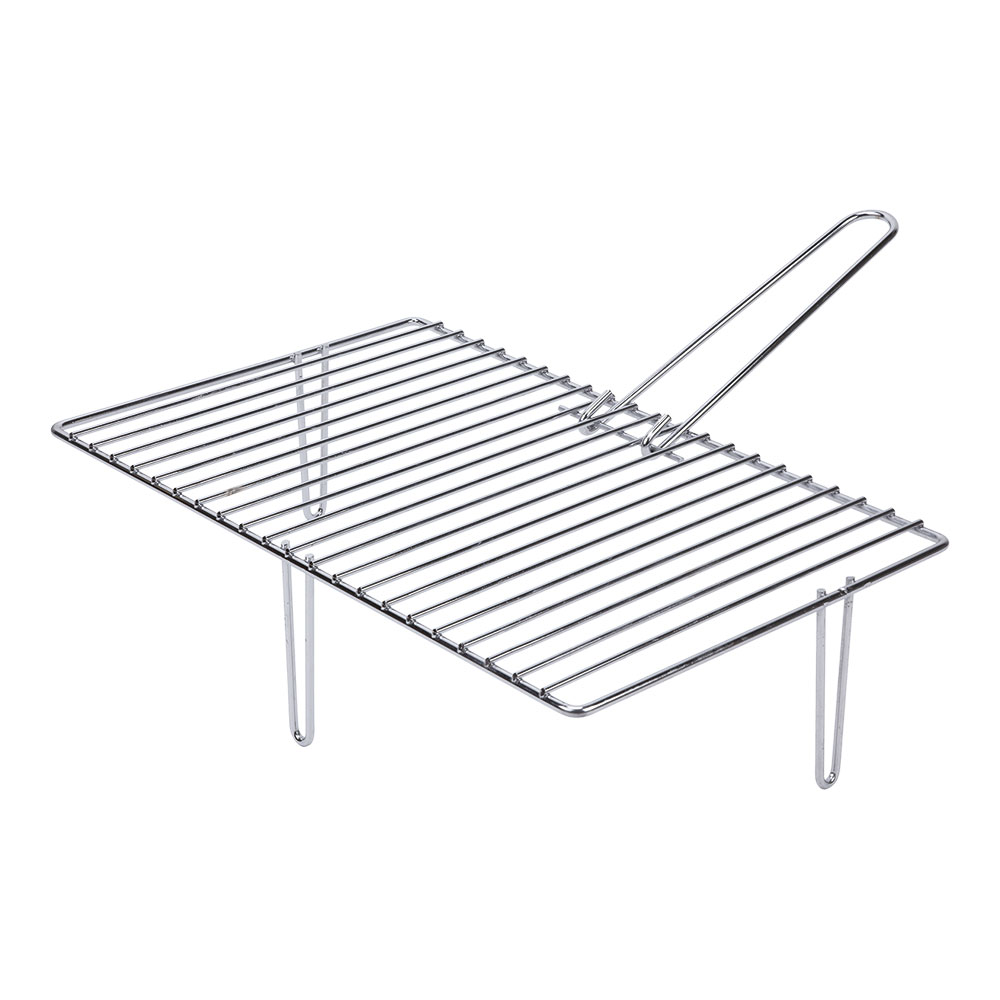 Grelha zincada de 3 patas para chaminé. medida: 46,6x28cm (largura/profundidade). com cabo extraível. patas de 120mm