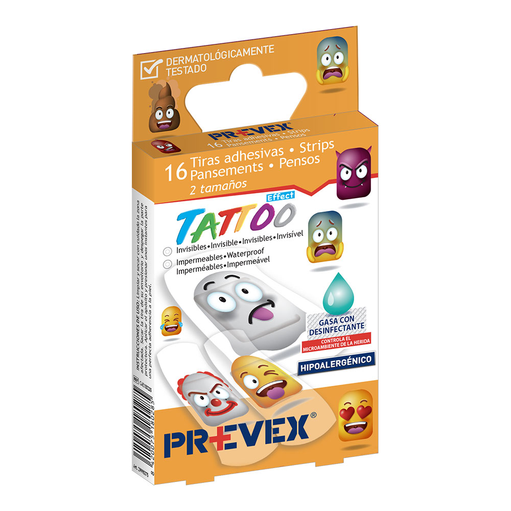 Tiras adesivas invisíveis para crianças com efeito tatuagem e impermeáveis com gaus desinfetantes. hipoalergénico. contém 16 riscas.
