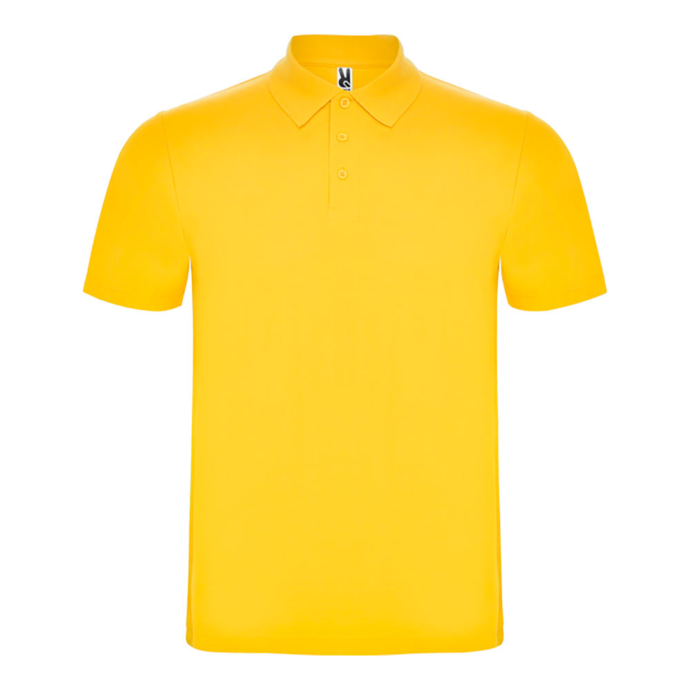 Polo austral amarelo t.m, 53 cm / 71 cm; de manga curta, com gola canelada e carcete de 3 botões, costuras reforçadas na gola; 100% algodão, malha piqué, 180 g/m²