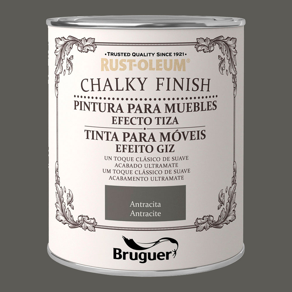 Rust-oleum chalky finish móveis antracita 750 ml. pintura efeito giz para um acabamento mate vintage. pintura a água, com o mínimo de olor. acabamento ultra-mate, efeito empoeirado, grande poder de cobertura em uma demão