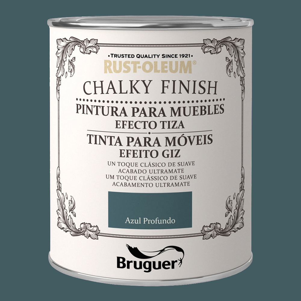 Rust-oleum chalky finish móveis azul profundo 750 ml. pintura efeito giz para um acabamento mate vintage. pintura a água, com o mínimo de olor. acabamento ultra-mate, efeito empoeirado, grande poder de cobertura em uma demão