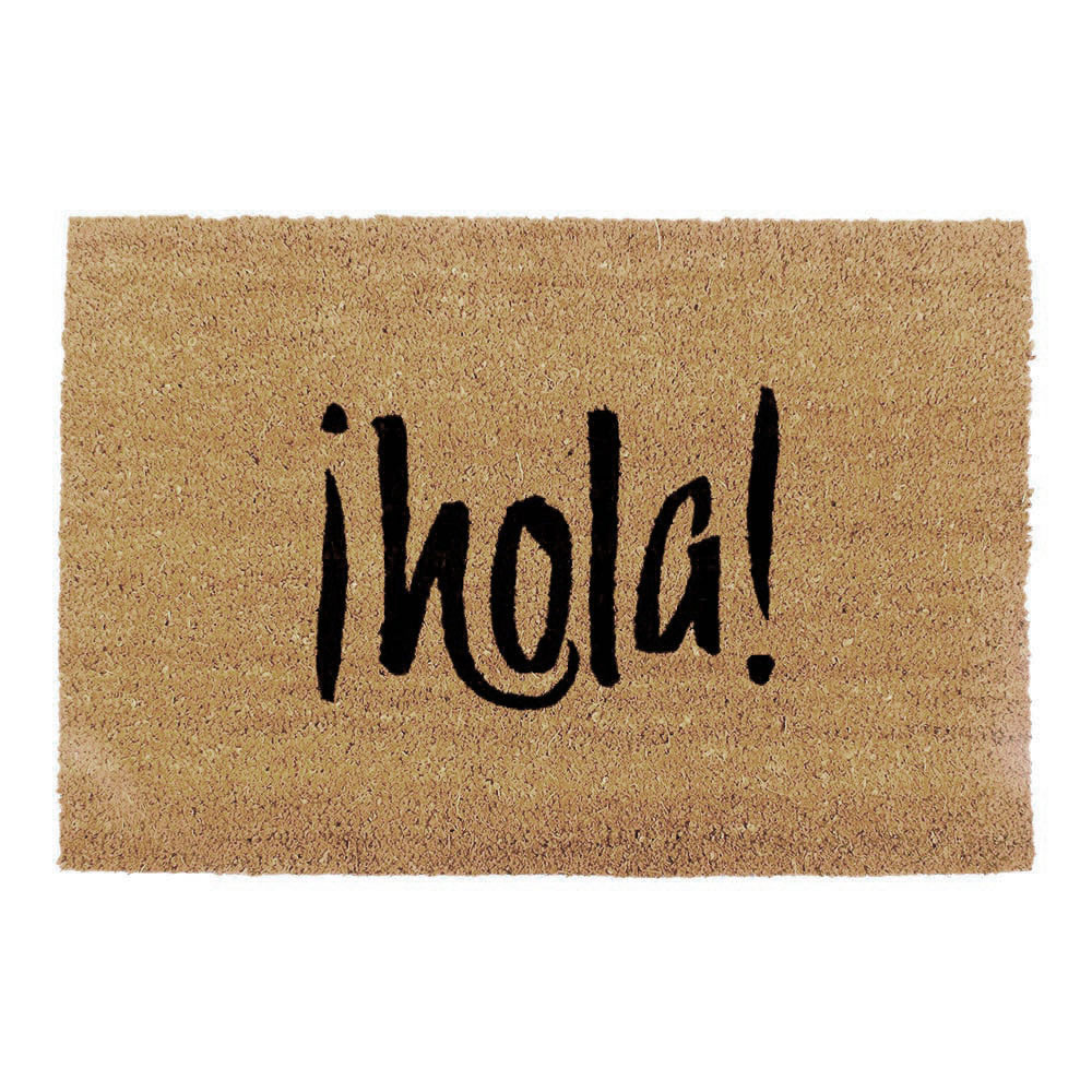 Tapete modelo hola, material: fibra de coco, verso: pvc vinil, medida: 60x40cm, cor castanho e preto