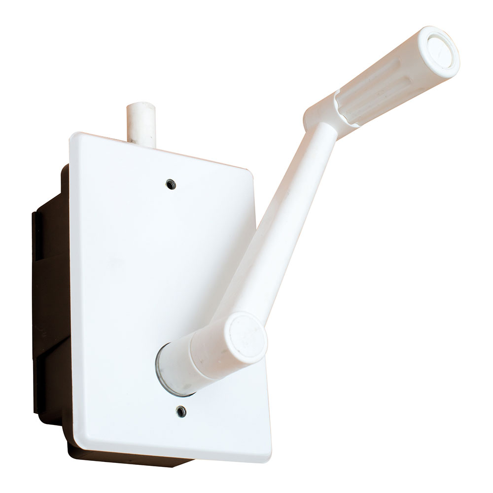 Pr17 torno de obturador embutido. suporta uma carga máxima de 20 kg. inclui manivela e corda. material abs. acabamento branco